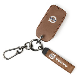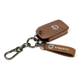 Etui Skórzane na Pilot z Brelokiem Volvo Brązowe