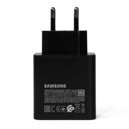 Szybko i bezpiecznie ładuj swoje urządzenia dzięki oryginalnej ładowarce Samsung 35W PD. Adapter sieciowy wyposażony jest w dwa porty – USB-C oraz USB-A, co pozwala na jednoczesne ładowanie dwóch urządzeń. Dzięki technologii Power Delivery (PD) oraz Adaptive Fast Charging (AFC) zapewnia maksymalną wydajność i krótszy czas ładowania zarówno dla smartfonów Samsung, jak i innych urządzeń obsługujących szybkie ładowanie.