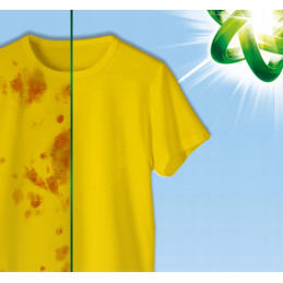 Formuła skoncentrowanego żelu skutecznie radzi sobie z uporczywymi zabrudzeniami, takimi jak tłuszcz, pot, kawa czy trawa- bez potrzeby wstępnego namaczania.