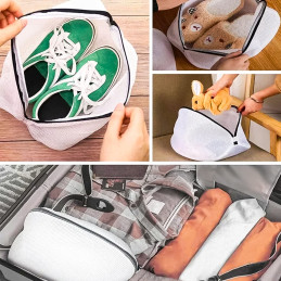 Bezpieczne pranie butów w pralce – torba skutecznie chroni obuwie przed otarciami, zarysowaniami oraz utratą kształtu podczas cyklu prania i wirowania. Idealnie nadaje się do sportowych trampek, adidasów, tenisówek czy lekkiego obuwia tekstylnego.