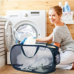 Przewiewna siatka – wykonana z wytrzymałego materiału, który umożliwia swobodny przepływ powietrza, dzięki czemu pranie „oddycha”. To szczególnie ważne, gdy ubrania czekają kilka dni na pranie – brak cyrkulacji powietrza często prowadzi do powstawania wilgoci i nieprzyjemnych zapachów.