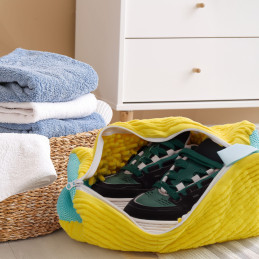 Dzięki solidnemu zamkowi błyskawicznemu, wkładanie i wyjmowanie butów jest szybkie i wygodne. Uniwersalny rozmiar worka (38 x 18,5 x 18,5 cm) pasuje do większości modeli obuwia sportowego, dziecięcego i codziennego. Wystarczy włożyć buty do środka, zamknąć zamek i wrzucić worek do pralki – tak proste i bezpieczne!