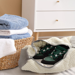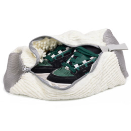 Dzięki solidnemu zamkowi błyskawicznemu, wkładanie i wyjmowanie butów jest szybkie i wygodne. Uniwersalny rozmiar worka (38 x 18,5 x 18,5 cm) pasuje do większości modeli obuwia sportowego, dziecięcego i codziennego. Wystarczy włożyć buty do środka, zamknąć zamek i wrzucić worek do pralki – tak proste i bezpieczne!