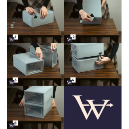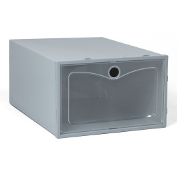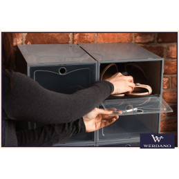 Przezroczysty front sprawia, że każda para jest dobrze widoczna – koniec z szukaniem właściwych butów w porannym pośpiechu. Pojemniki są łatwe w obsłudze, otwierają się wygodnymi drzwiczkami i można je piętrować, tworząc stabilną mini-szafkę na buty. To nowoczesne, praktyczne i eleganckie rozwiązanie, które sprawdzi się w każdym wnętrzu.
