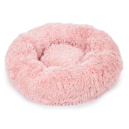 Legowisko wykonane jest z wyjątkowo delikatnego, długiego pluszu, który jest przyjemny w dotyku i nie podrażnia skóry. Materiał pomaga utrzymać ciepło, co czyni je idealnym wyborem szczególnie w chłodniejsze dni. Miękkie wypełnienie dopasowuje się do kształtu ciała pupila, odciążając stawy, kark oraz kręgosłup.