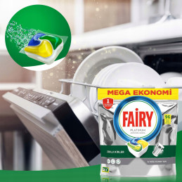 Kapsułki do zmywarki Fairy Platinum All in One to zaawansowane rozwiązanie, które zapewnia wyjątkową czystość naczyń oraz ochronę zmywarki. Każda kapsułka łączy w sobie potężne działanie płynu, proszku oraz soli nabłyszczającej, dzięki czemu radzi sobie nawet z najbardziej uporczywymi zabrudzeniami, takimi jak zaschnięty tłuszcz czy resztki jedzenia. Produkt nie tylko skutecznie myje naczynia, ale również zapobiega osadzaniu się kamienia i chroni metalowe elementy zmywarki przed korozją.